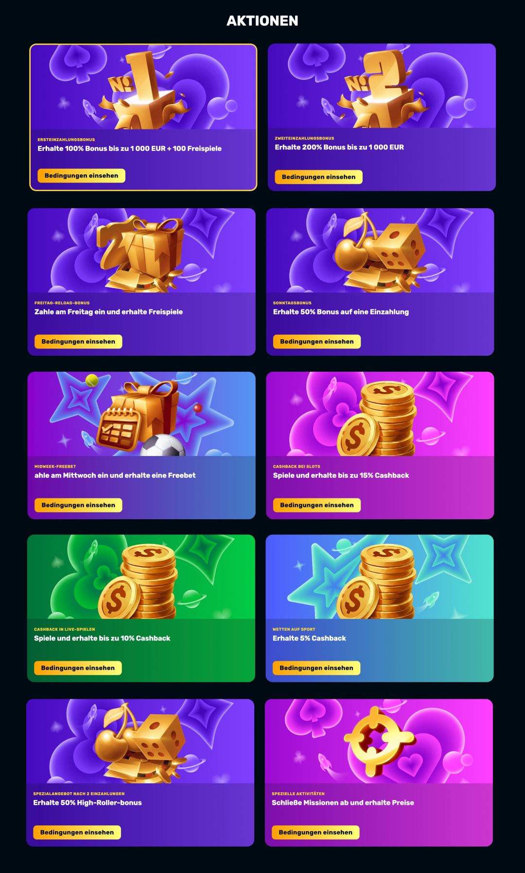 Unser Rocket Play Bonus Codes und Bonus-System belohnt sowohl neue als auch treue Spieler großzügig. Du profitierst von verschiedenen Aktionen, die Deine Gewinnchancen erhöhen. Alle Boni sind fair gestaltet und bieten echte Mehrwerte für Dein Spielerlebnis.
